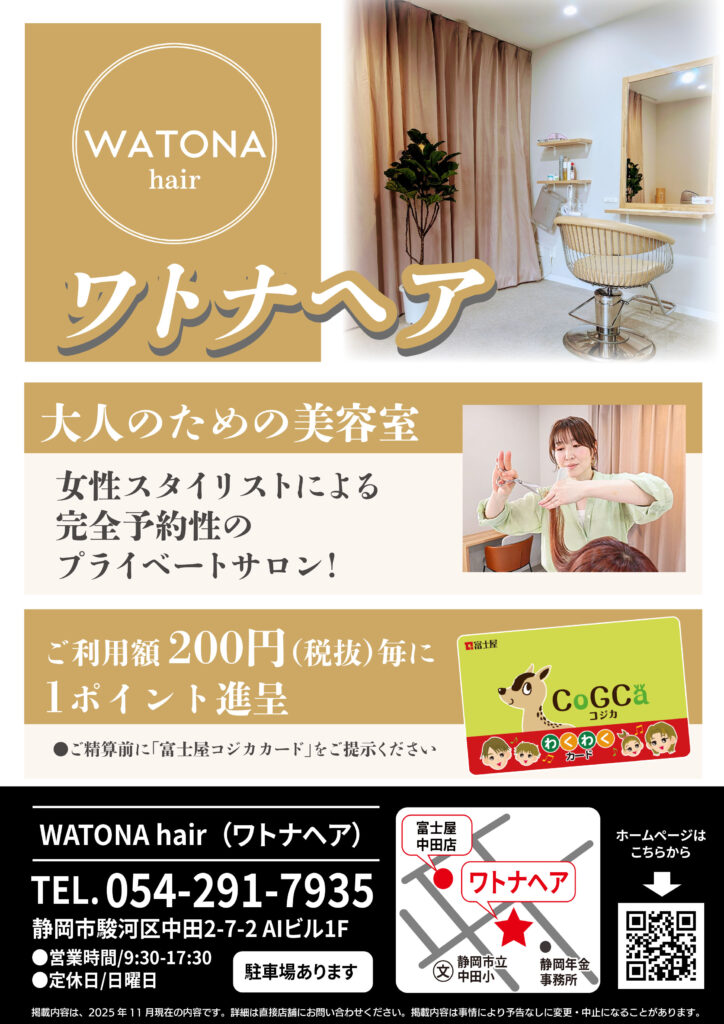 スーパー富士屋でお使いいただけるコジカポイントがWATONAhair(ワトナヘア)でもポイントがたまります!